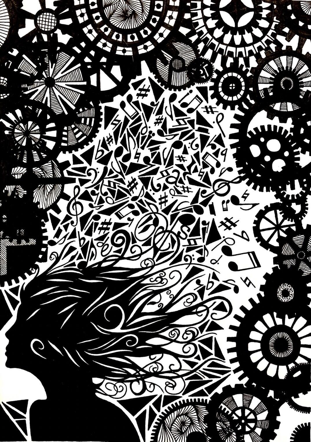 「愛と音楽は歯車である」という考えからできたイラストです。