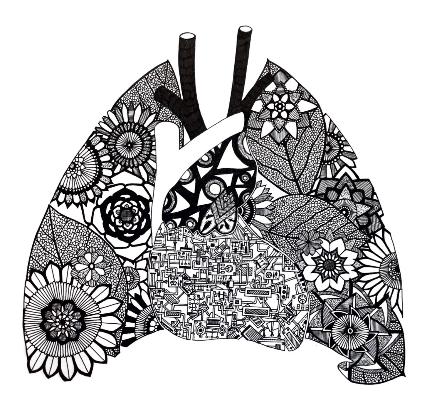 心臓と肺をモチーフにしたイラストの一部を用いたデザインです。